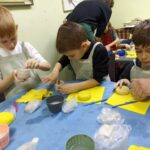 Дети познакомились с процессом изготовления керамических изделий, наблюдали за работой мастера — как замешивается глина, лепятся изделия, обжигаются. Дети попробовали сами слепить чашечки и раскрасить под руководством наставника. Это вызвало огромный интерес к технике ручной работы.