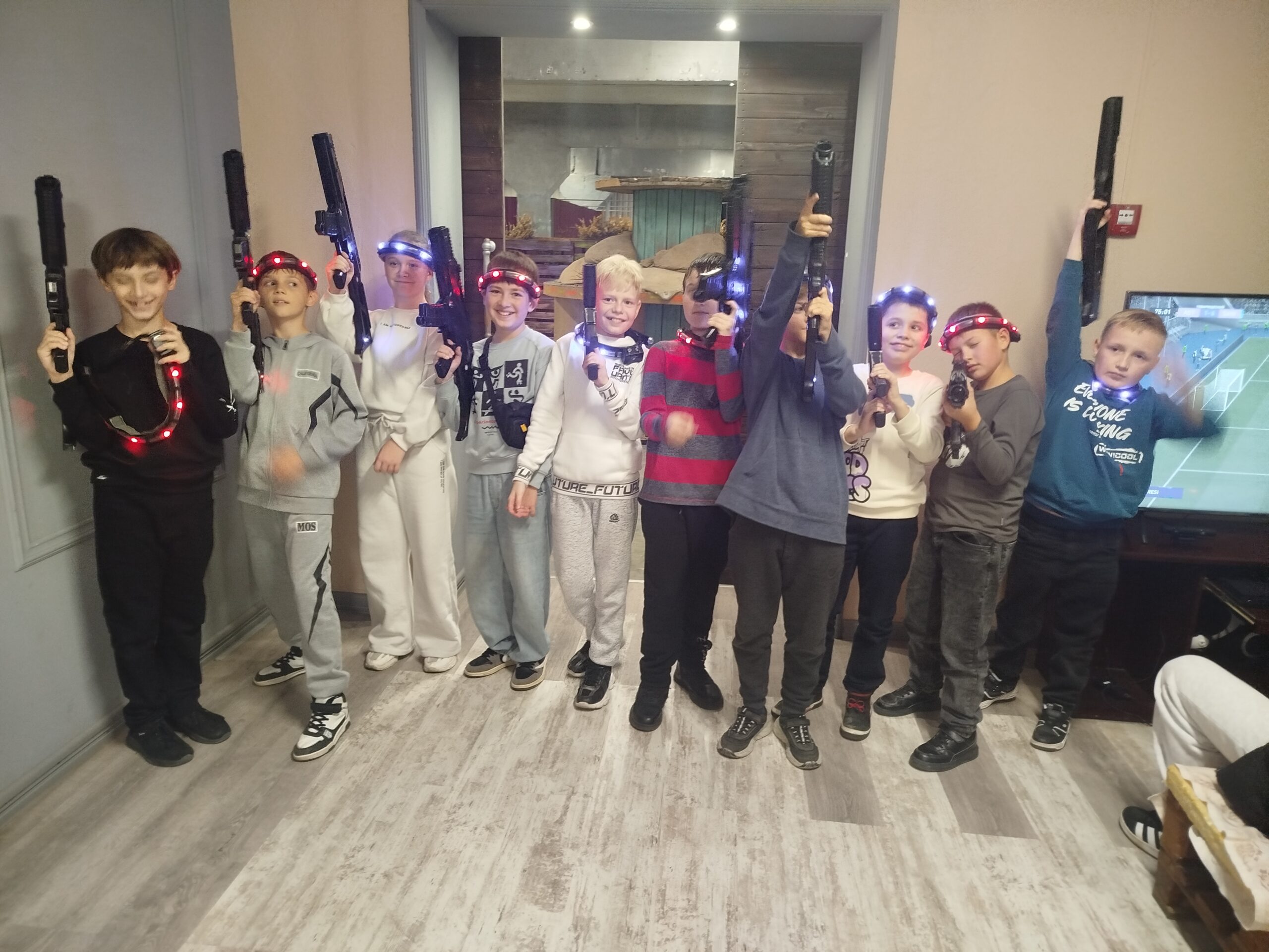 Самым активным и захватывающим этапом стал бой в лазертаге. Ученики продемонстрировали отличные навыки командной работы, стратегическое мышление и ловкость. Игра прошла в атмосфере азарта и здорового соперничества, укрепив дружеские связи в коллективе. По итогам упорной борьбы ребята получили заряд позитивных эмоций и гордость за совместный успех.