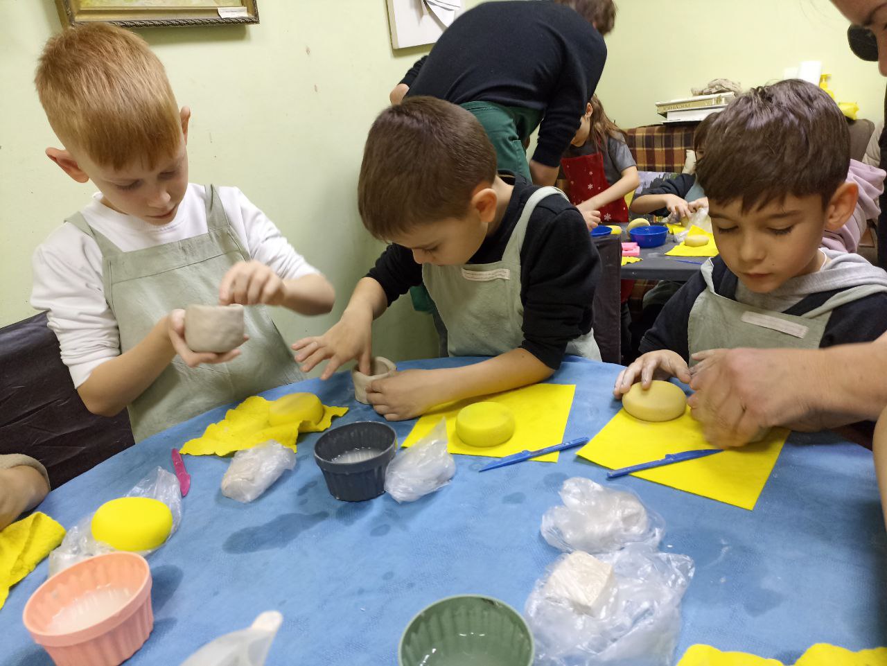 Дети познакомились с процессом изготовления керамических изделий, наблюдали за работой мастера — как замешивается глина, лепятся изделия, обжигаются. Дети попробовали сами слепить чашечки и раскрасить под руководством наставника. Это вызвало огромный интерес к технике ручной работы.