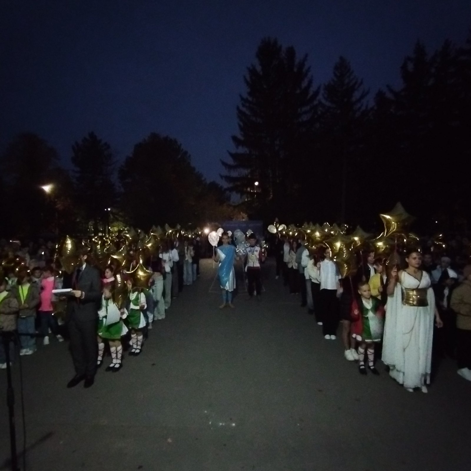 Программа продолжилась яркими выступлениями учащихся, которые подготовили творческие номера в честь юбилея. Кульминацией торжественной части стало грандиозное шествие колонны отличников и активистов школы, продемонстрировавших гордость и успехи гимназии.