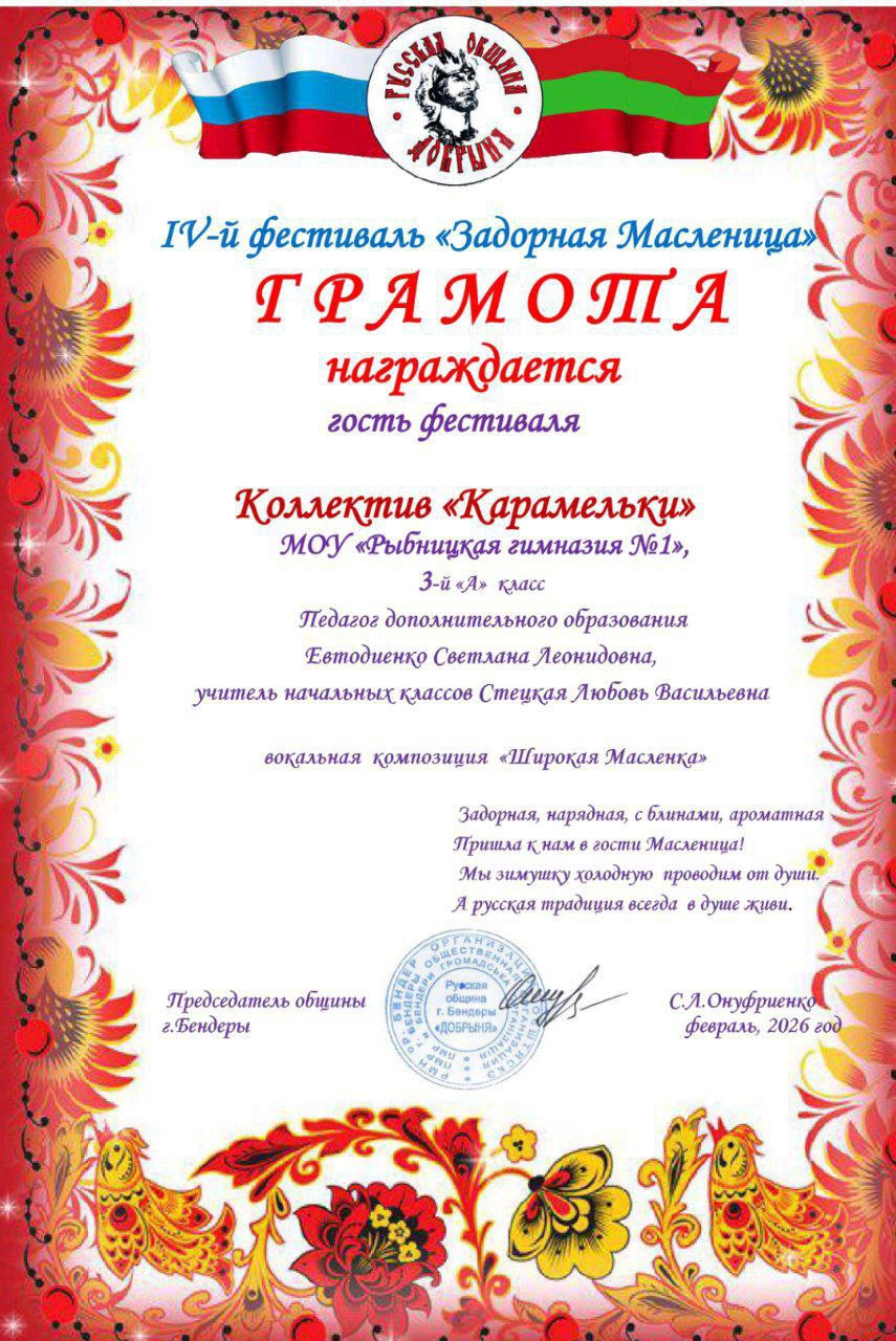 Победители V Муниципального конкурса детского экологического творчества «Эко-фантазия» С 01 по 25 декабря 2025 года в Рыбницком районе и г.Рыбница прошёл муниципальный конкурс детского экологического творчества «Эко-фантазия». Конкурс был проводился с целью пропаганды уменьшения влияния антропогенных воздействий на окружающую среду, воспитания у подрастающего поколения гуманизма, любви и бережного отношения к природе, а также развития творческих способностей обучающихся. На конкурс были представлены 300 работ из организаций образования Рыбницкого района и г.Рыбницы, среди них наши учащиеся заняли призовые места.