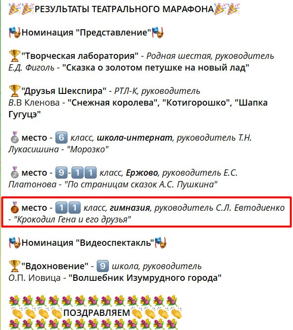 ПОЗДРАВЛЯЕМ НАШИХ ПОБЕДИТЕЛЕЙ! ЖЕЛАЕМ ИМ ТВОРЧЕСКИХ УСПЕХОВ! 🌟👍👏💐🌟