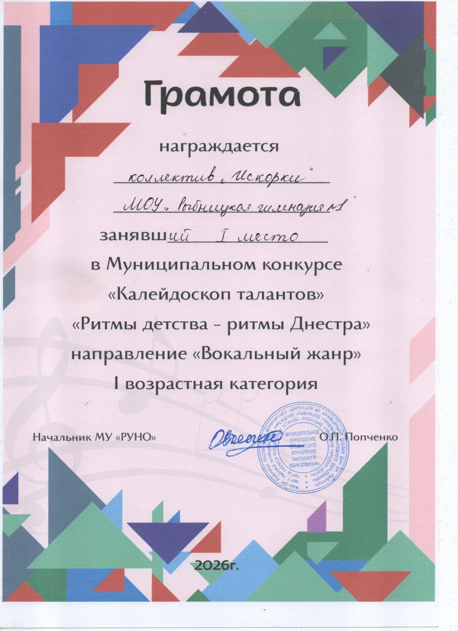 Сегодня состоялся муниципальный конкурс “Калейдоскоп талантов” – Ритмы детства, ритмы Днестра. Наши дети выступали в двух направлениях и в двух возрастных категориях.