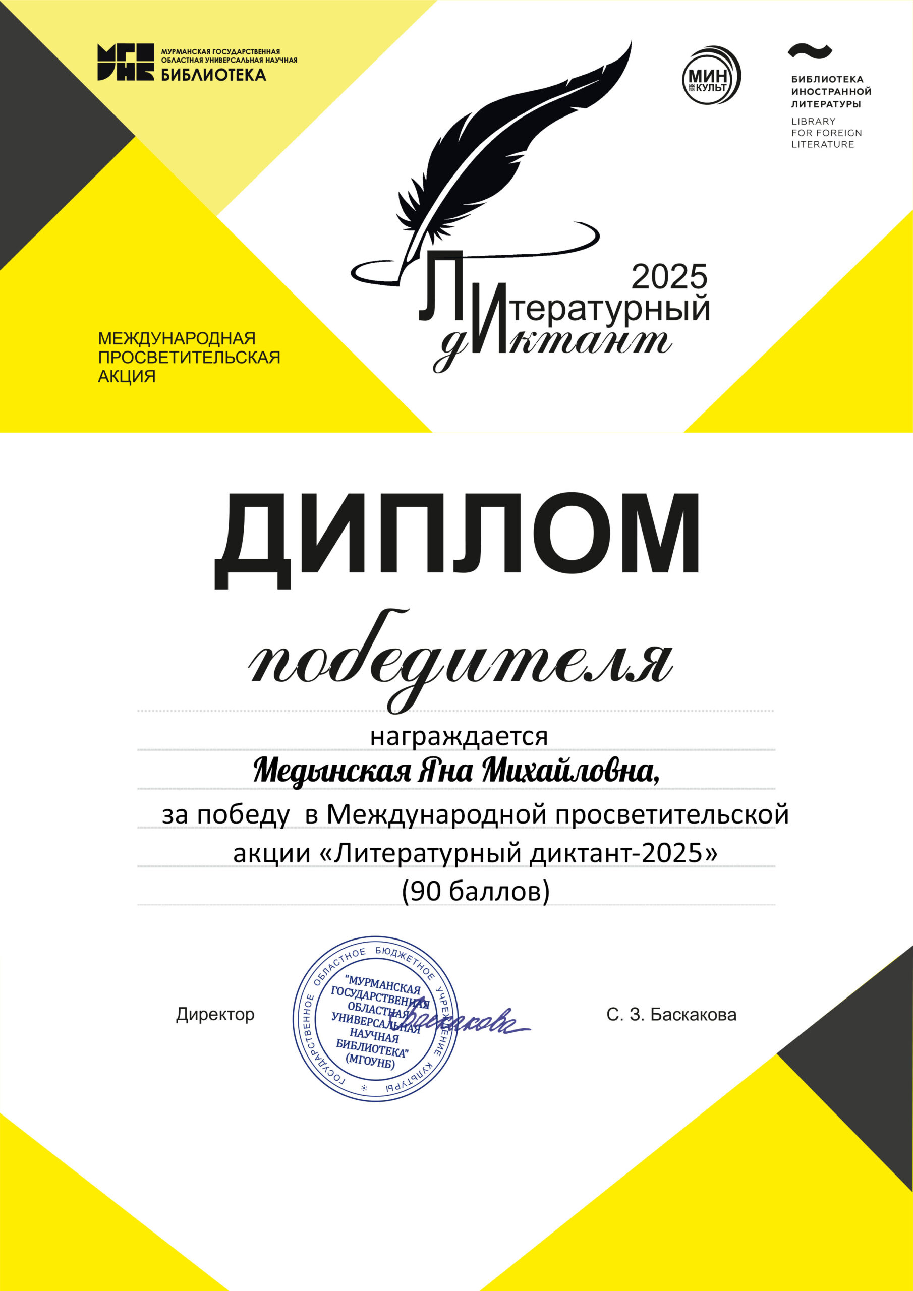 Отличник, набравший максимальное количество баллов, объявляется победителем и получает диплом победителя.