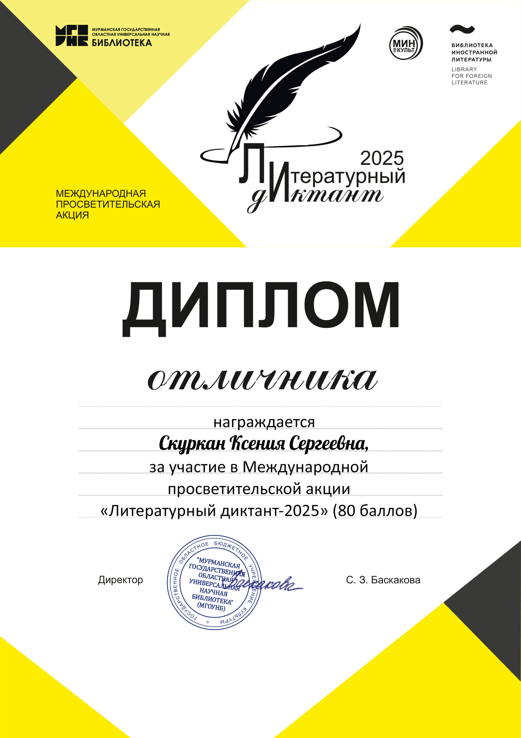 Участник, набравший 80% и более от максимального количества баллов, получает диплом отличника.