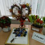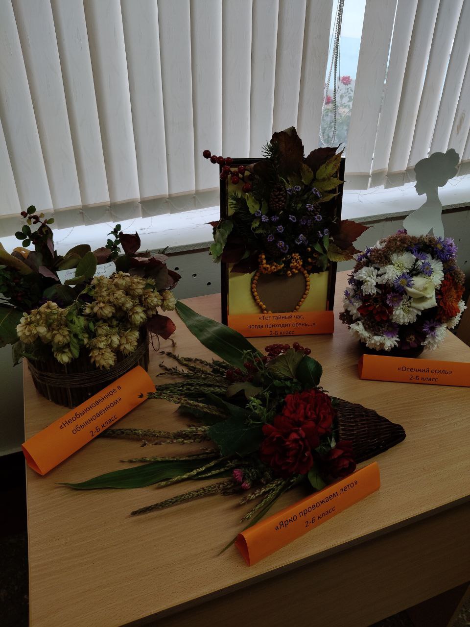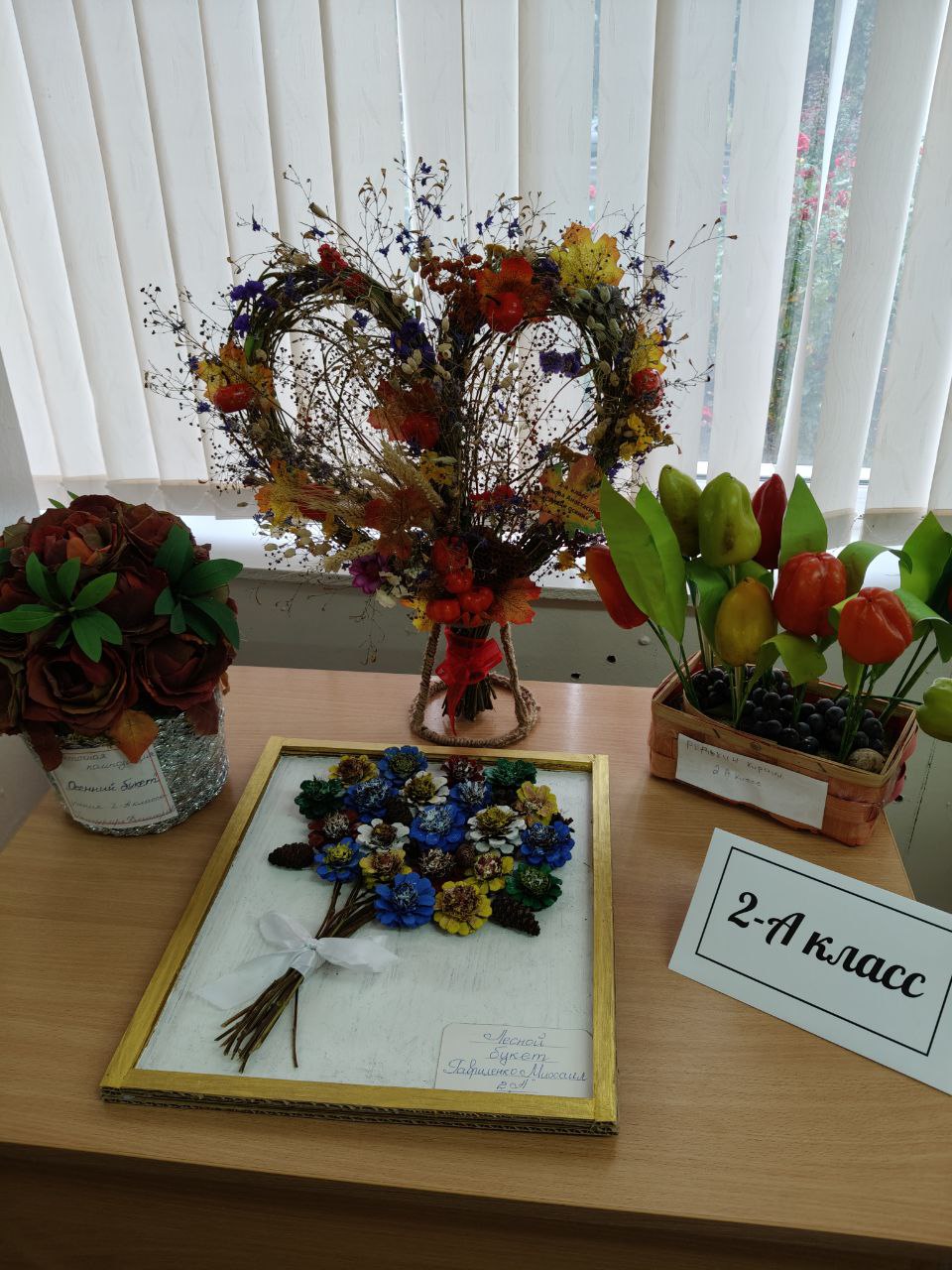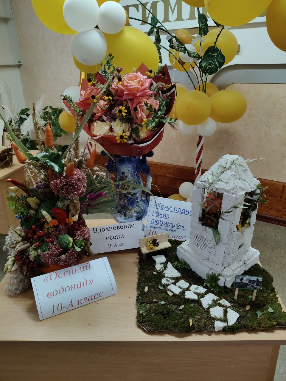 Сегодня в гимназии прошла традиционная выставка творческих работ 🍂✨ «Осенний букет» 🍂✨. Учащиеся вместе с родителями и педагогами представили настоящие шедевры из осенних даров природы 🌰🍏🍂: композиции из листьев 🍃, цветов 🌸, овощей 🥕 и фруктов 🍎 превратились в яркие картины 🖼 и необычные скульптуры 🦔🐿.